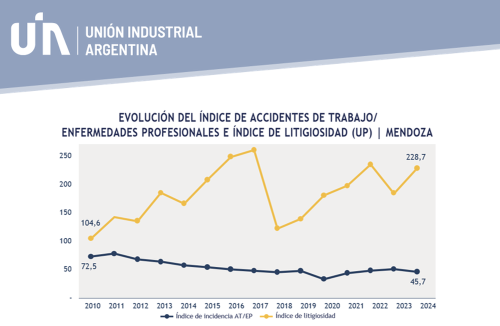 Desde la Unión Industrial Argentina (UIA) reconocen que en Mendoza ha habido avances, pero proponen cambios en el sistema actual.Mientras los accidentes en el trabajo se encuentran en mínimos históricos, los juicios a las Aseguradoras de Riesgos del Trabajo van en incremento. Mendoza no escapa a esta tendencia nacional y está entre las cuatro provincias con mayor cantidad de procesos judiciales contra las ART. Empresarios mendocinos presentaron propuestas.